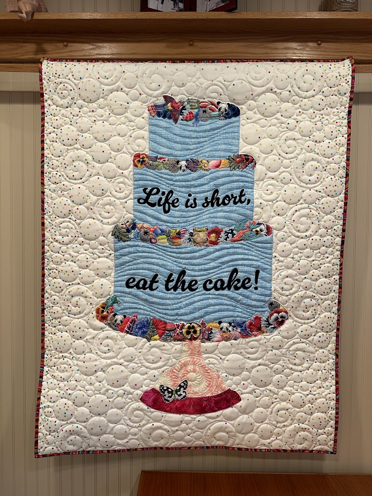 For the past 40 years, quilting has been my passion. Then in 2018, I took a class and discovered collage quilting. What an experience! After my first quilt, I was hooked! It is why I decided to jump off the cliff and develop my first collage art pattern! That is how Moo-Shu the Panda was born! All are art quilts. The large “I Spy” gumball machine (I Spy, Halloween, and Christmas snow globe versions) sure to delight the kids and Angel in Flight! New in 2024, is “Life is Short, Eat the Cake” collage art quilt pattern. It can be made in so many different versions: birthday, anniversary, baby shower, etc. All PDF patterns are full-size and include supply list and detailed instructions.